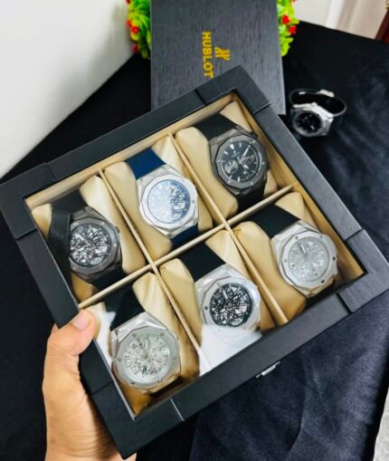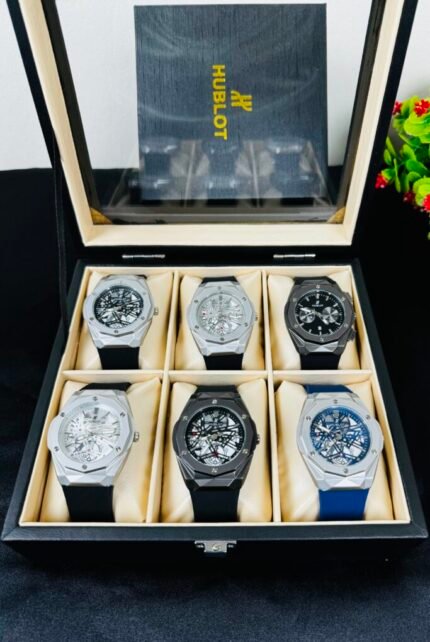 6 Slot Premium Leather Box With 6 Hublot Spider belt Watch⌚