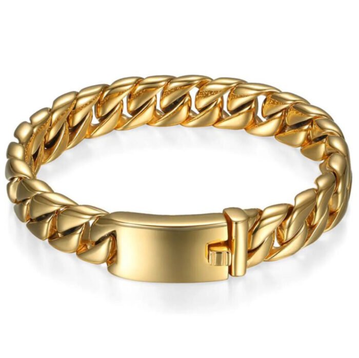Be the first to review “12MM Wide Polished Solid Stainless Steel Link Chain Bracelet Golden” Cancel reply