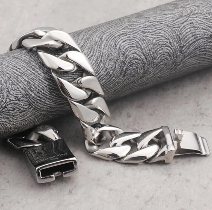 Be the first to review “12MM Wide Polished Solid Stainless Steel Link Chain Bracelet silver” Cancel reply