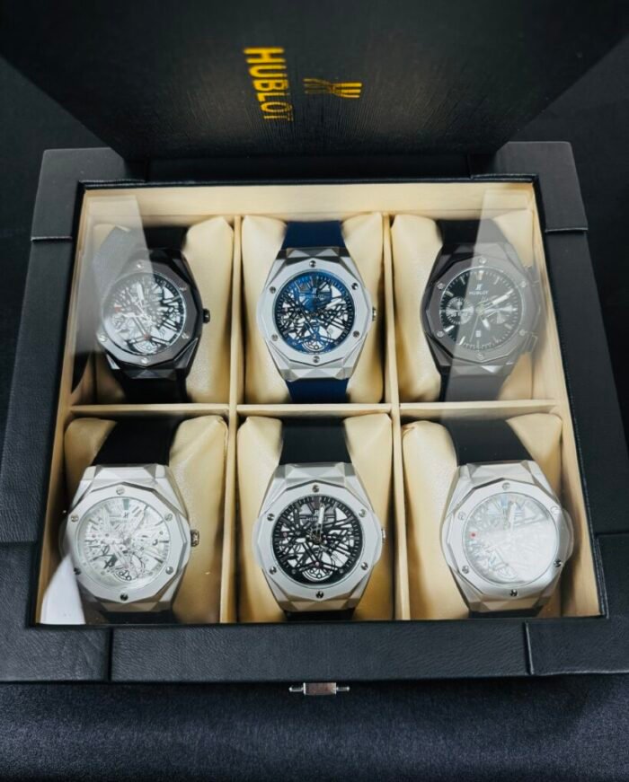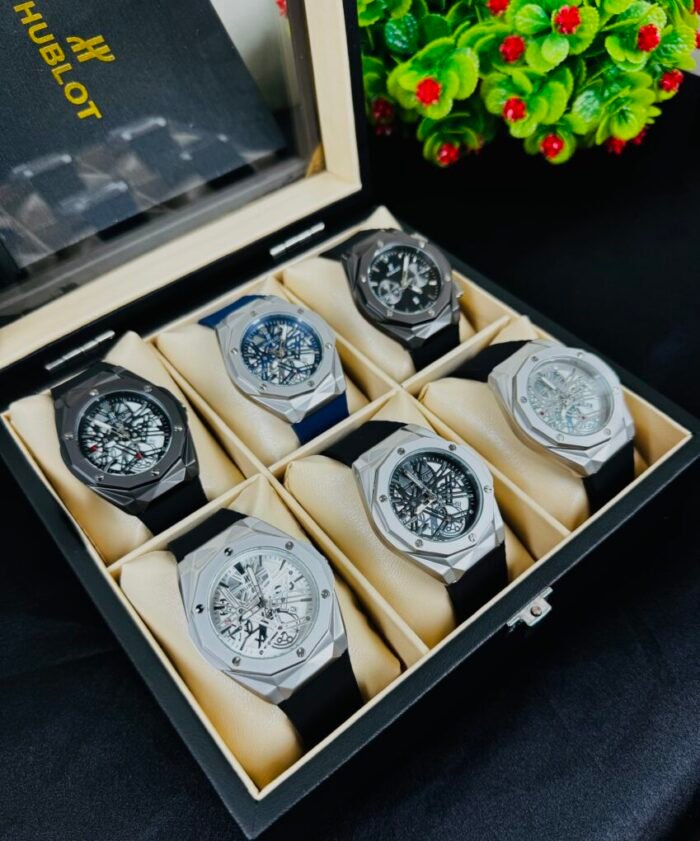 Be the first to review “6 Slot Premium Leather Box With 6 Hublot Spider belt Watch⌚” Cancel reply