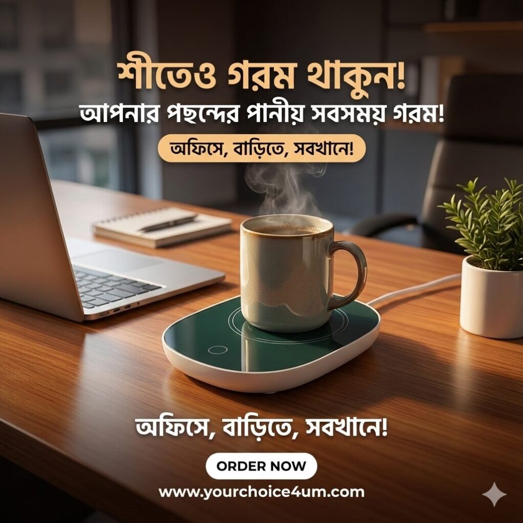 ThermoWarm™ Electric Cup Warmer আপনার প্রতিদিনের চা, কফি বা দুধ ঠান্ডা হয়ে যাওয়ার ঝামেলা একদম শেষ করে দেবে। অফিসে কাজ করার সময়, পড়াশোনার ফাঁকে কিংবা ঘরে আরাম করে বসে—এই স্মার্ট কাপ ওয়ার্মার আপনার পানীয়কে দীর্ঘ সময় ধরে উষ্ণ রাখে।